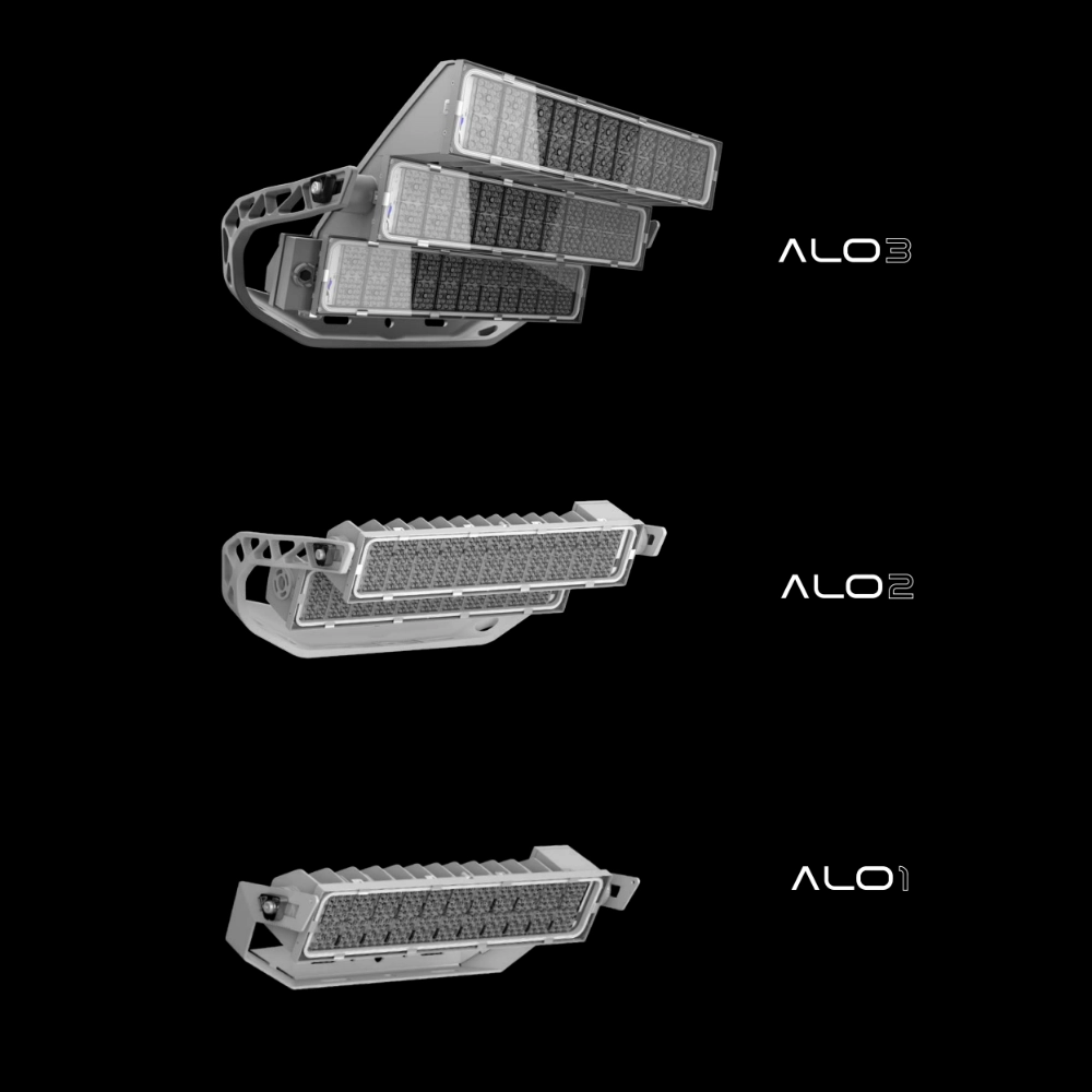 - Två grundvarianter: ALO Sport för arenabelysning på professionell nivå och ALO Wide Area för belysning av träningsplaner, stora ytor, fasader och liknande