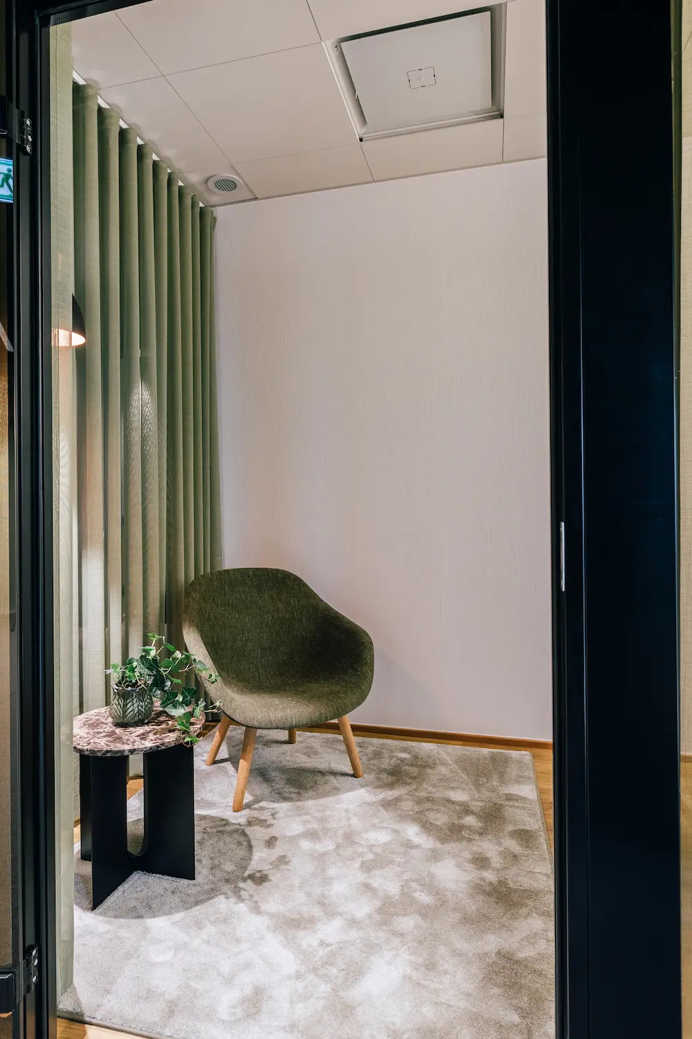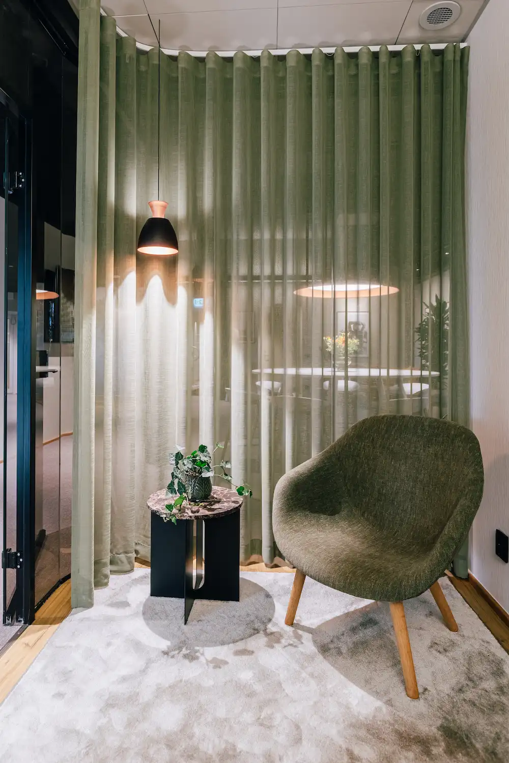 Tillval som har gjorts i armaturer är 3000 Kelvin och Ra90 – en varm och behaglig färgtemperatur som ger både trivsel och tydlighet. Ljuset spelar tillsammans med inredningens kulörer, textilier och träslag, snarare än att ta över.