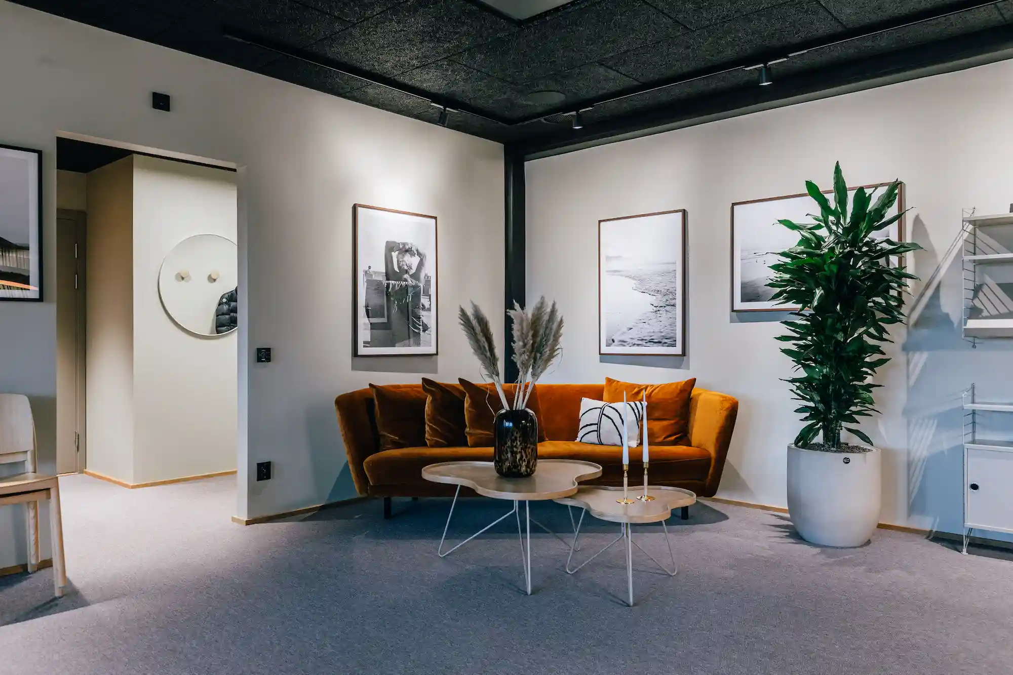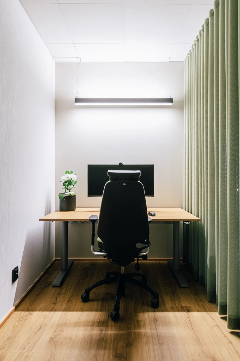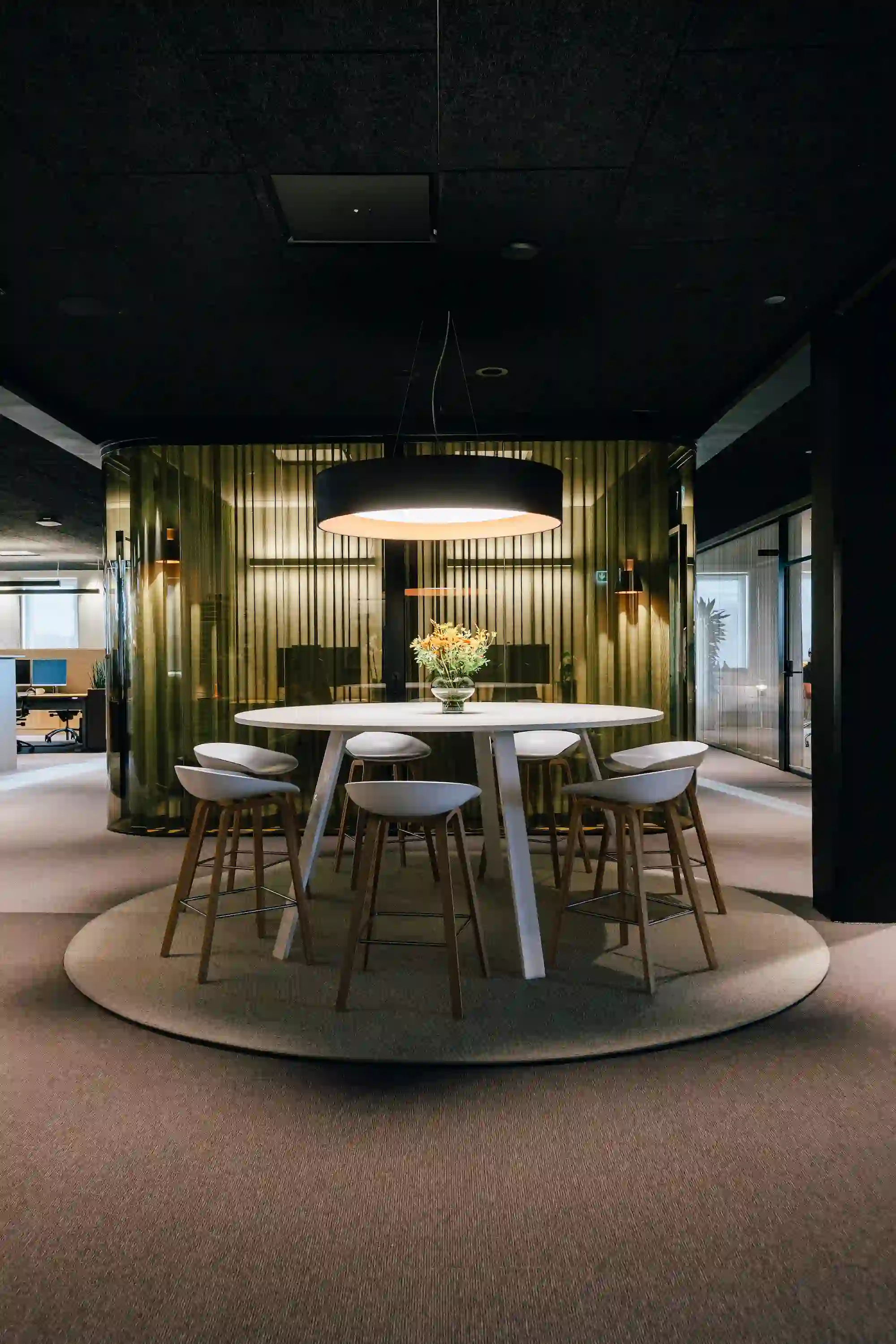 För att få rätt balans mellan estetik och funktion kopplades elkonsult Nils Åkerblom in. Tillsammans har dom tagit fram en belysningslösning som lyfter rummen, förstärker materialvalen och sätter stämningen – oavsett om det handlar om fokuserat arbetsljus eller mjuk atmosfär i loungen.