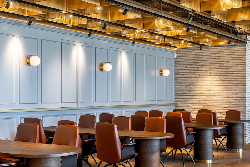 I restaurang- och sociala ytor kompletteras detta med mer dekorativa inslag, där armaturer som Noox bidrar till en varmare och mer intim atmosfär, utan att tumma på ljuskvaliteten.